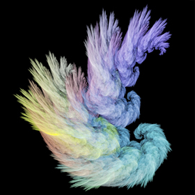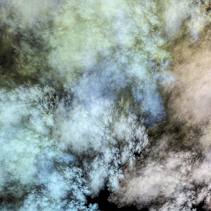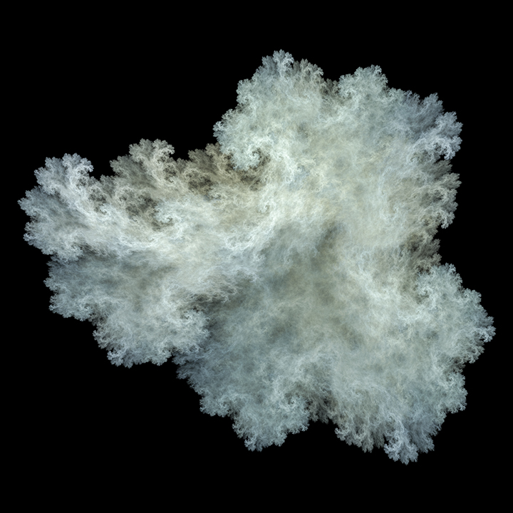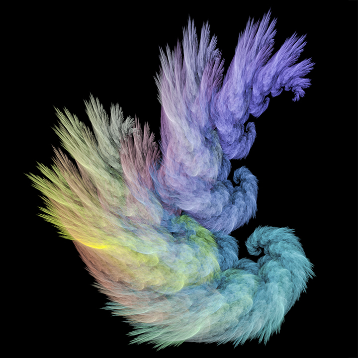 I wrote my own code, but the idea for these images isn't original: I am using the well known fractal flame algorithm, an extension of the chaos game algorithm, created by Scott Draves. Coding it myself allowed me to control aspects closely, and I used randomization to choose the underlying affine maps that define the fractals. As with a lot of my work, I generate many images randomly, and only save the images when I decide that they are visually compelling.