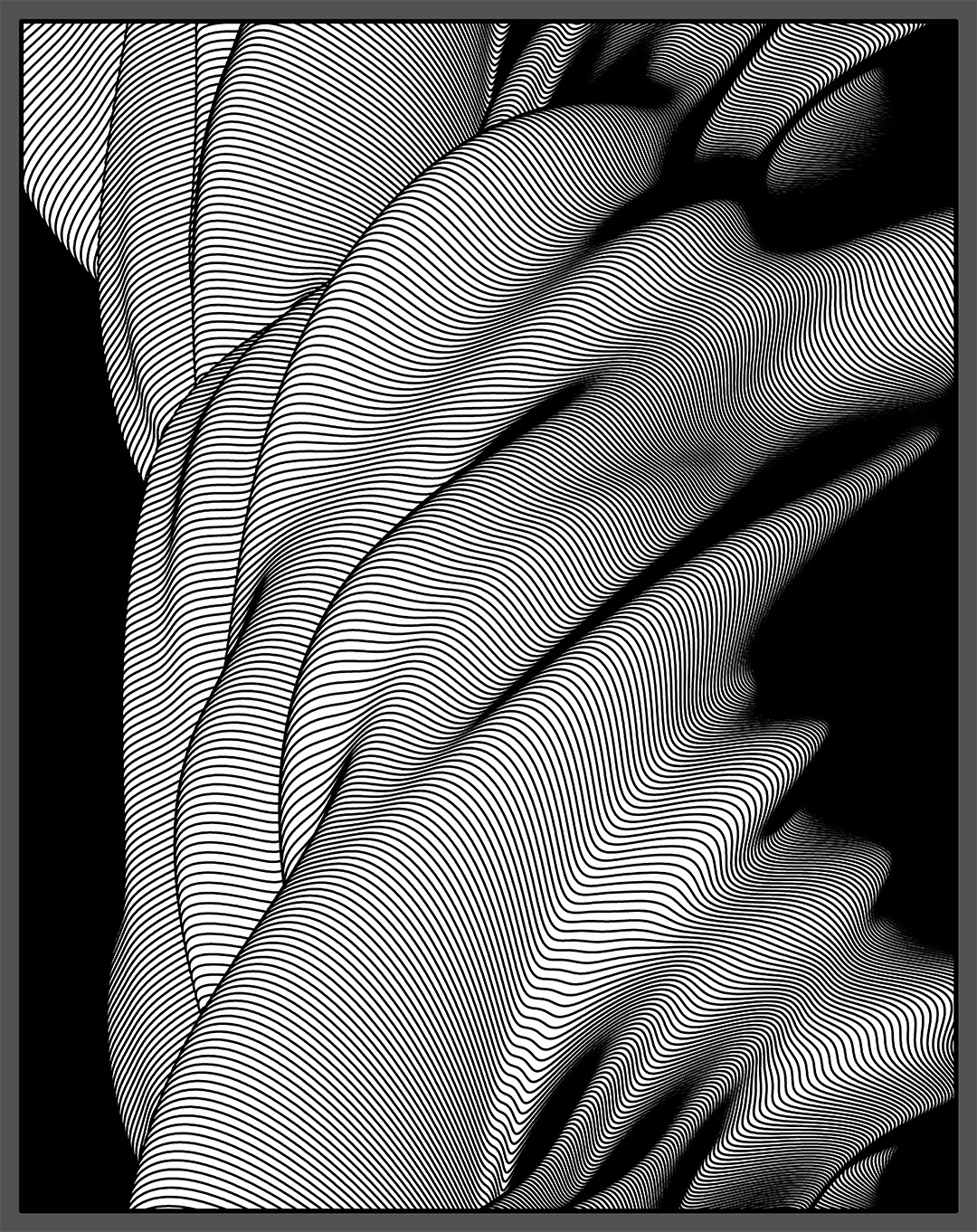 Reworking some previously used algorithms to create a variety of undulating shapes. A variation on this algorithm is used for my Twists.
