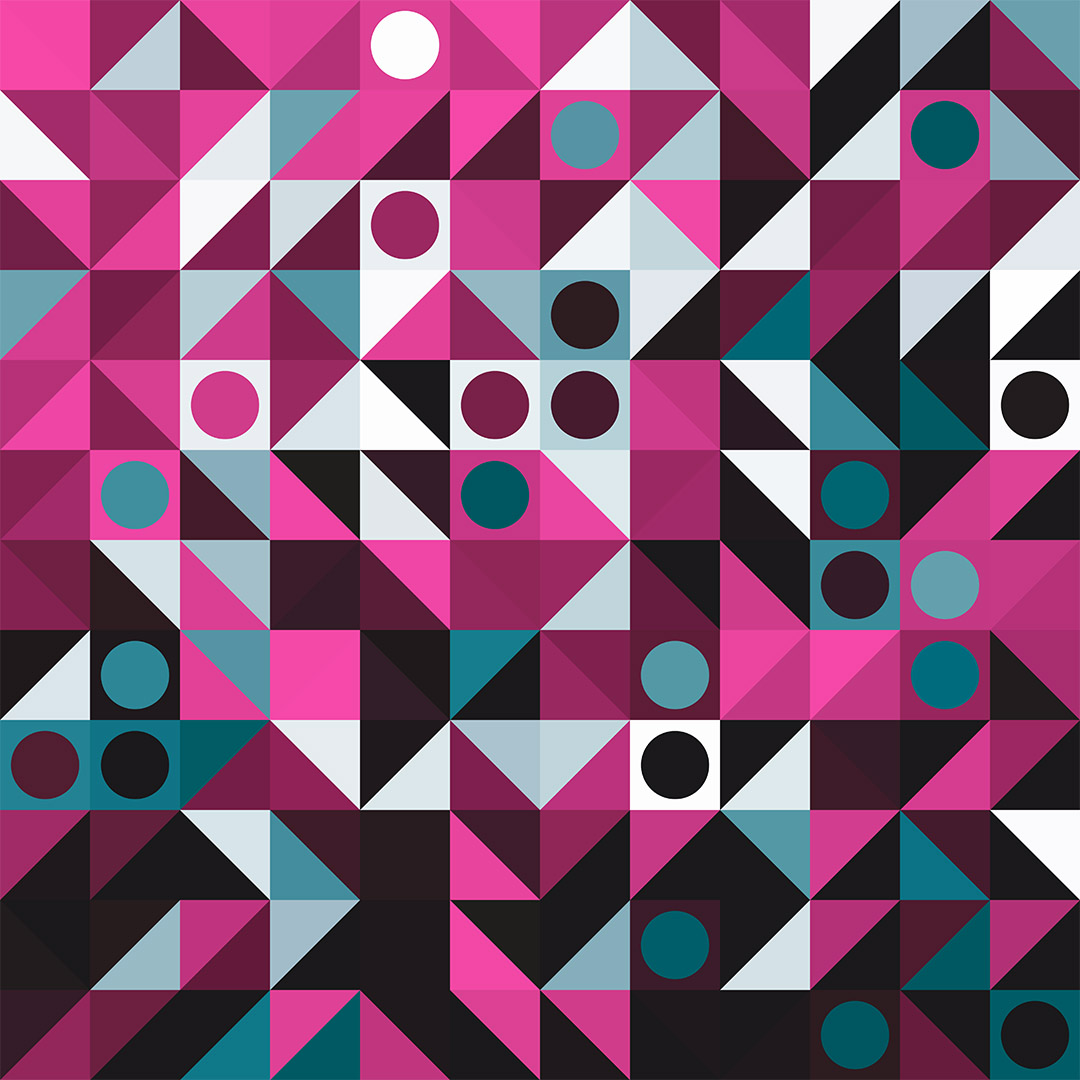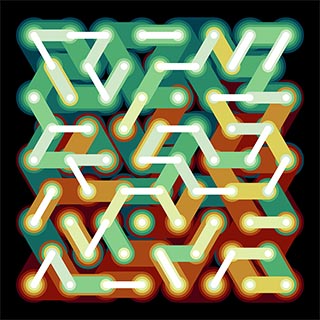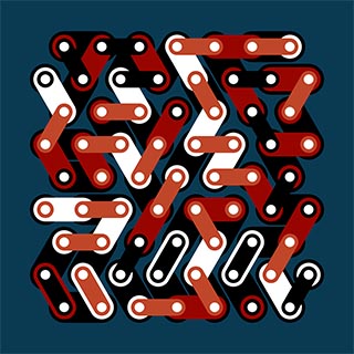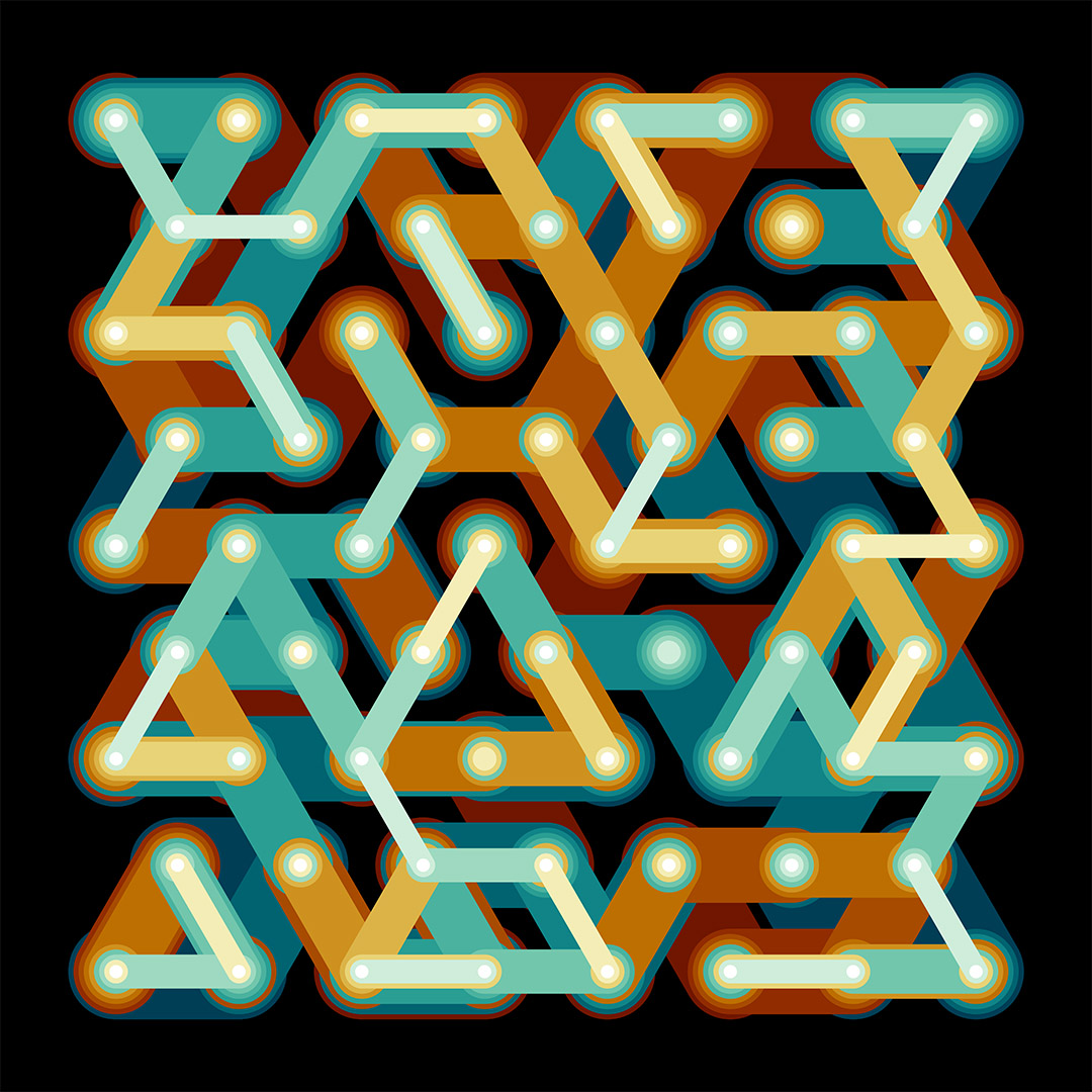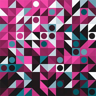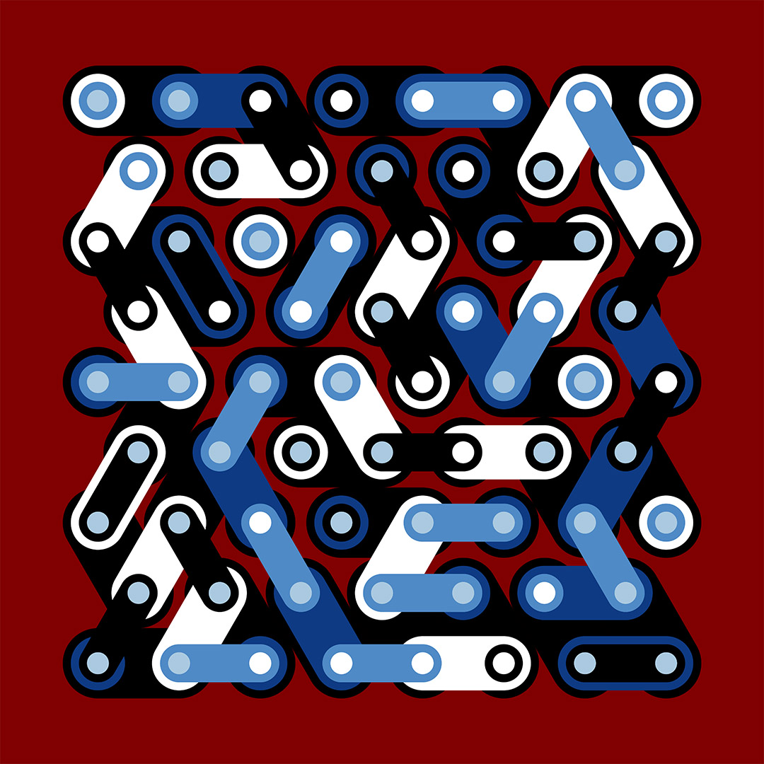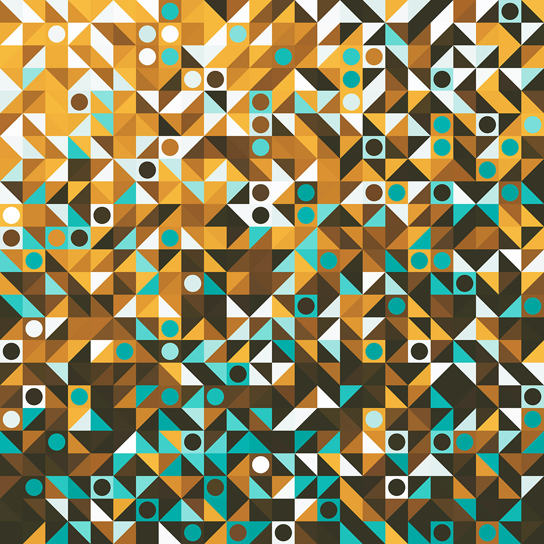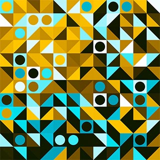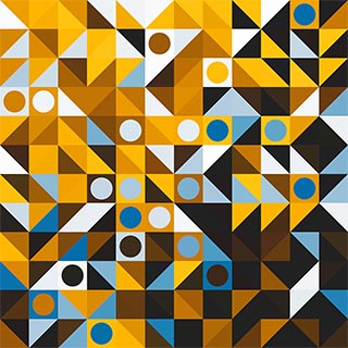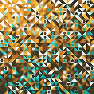 These minimalist images arose out of a desire to focus on simplicity, perhaps to offset the complexity of life. But the underlying algorithms are in fact somewhat complicated. Most of the compositions use color palettes which are randomly generated by rules I devised, whereas others were created with palettes I chose very specifically. Each shape's color is randomly derived from the palette, but usually subject to certain probability constraints and rules which cause transitions across the image.