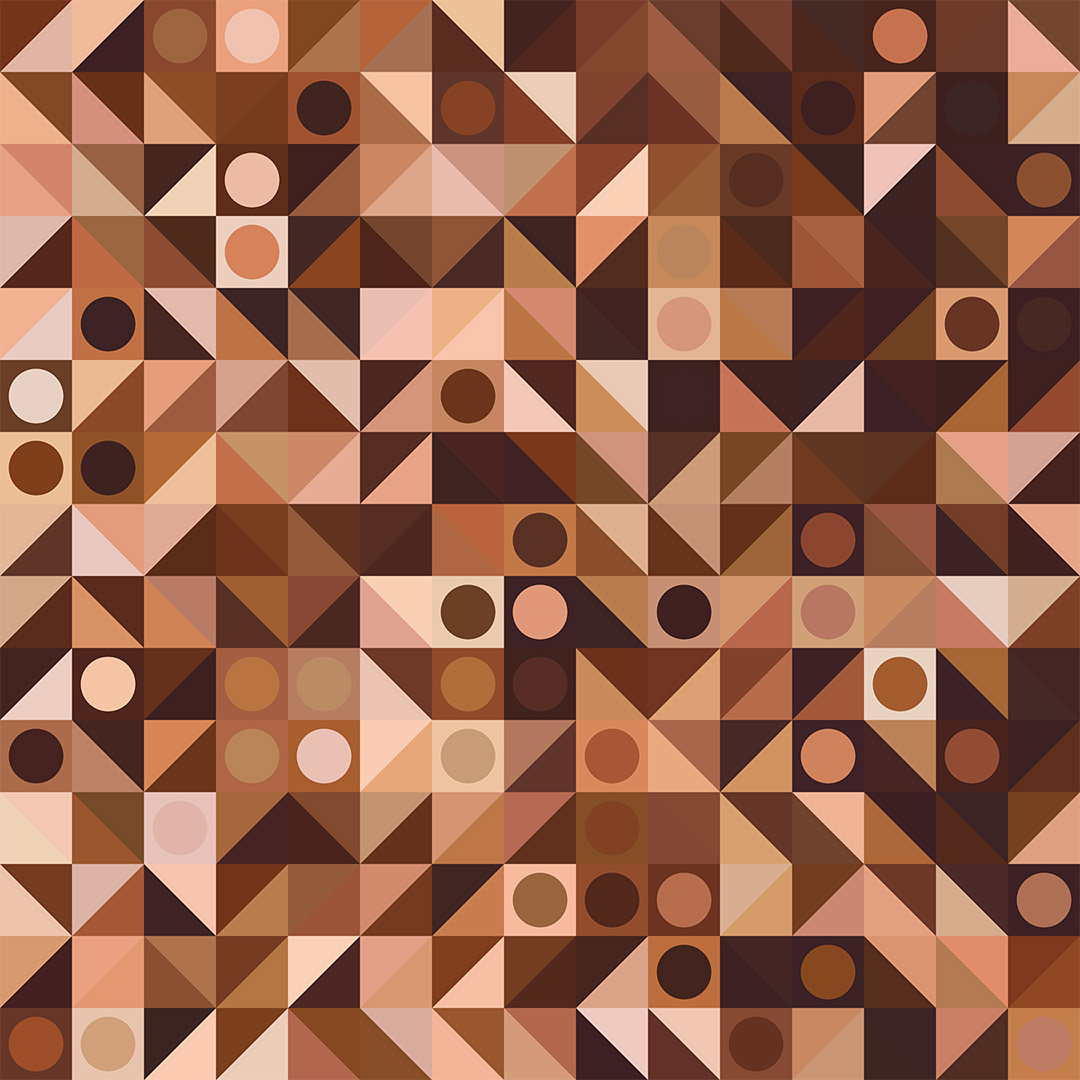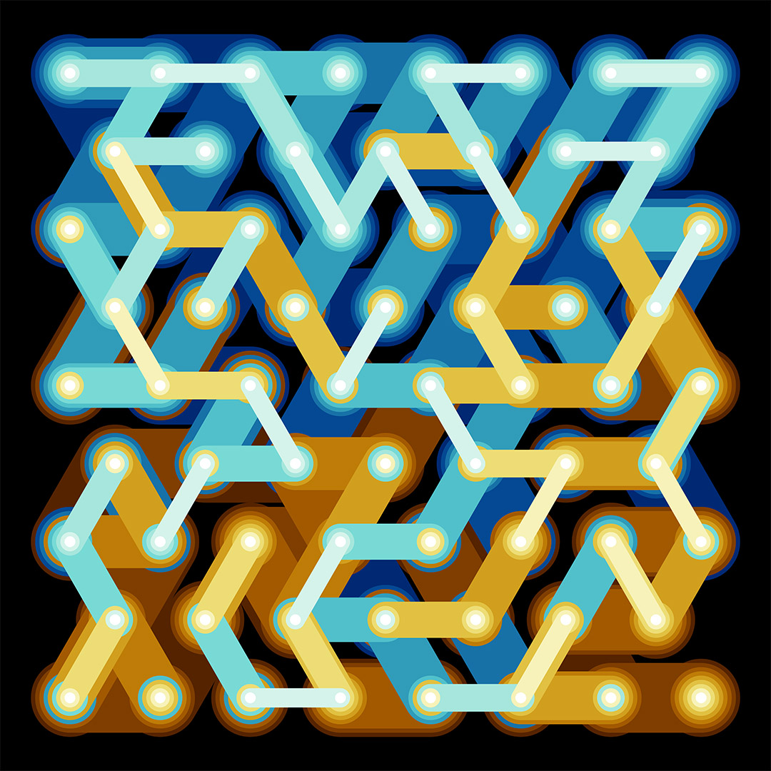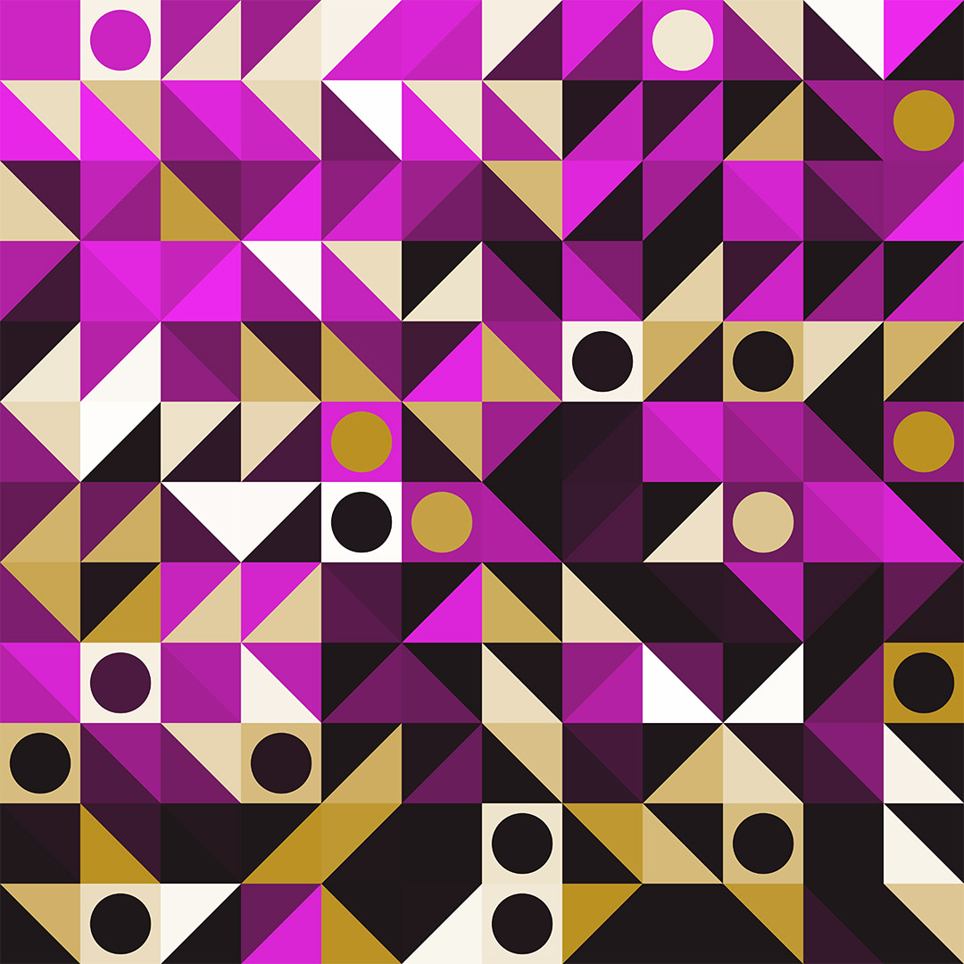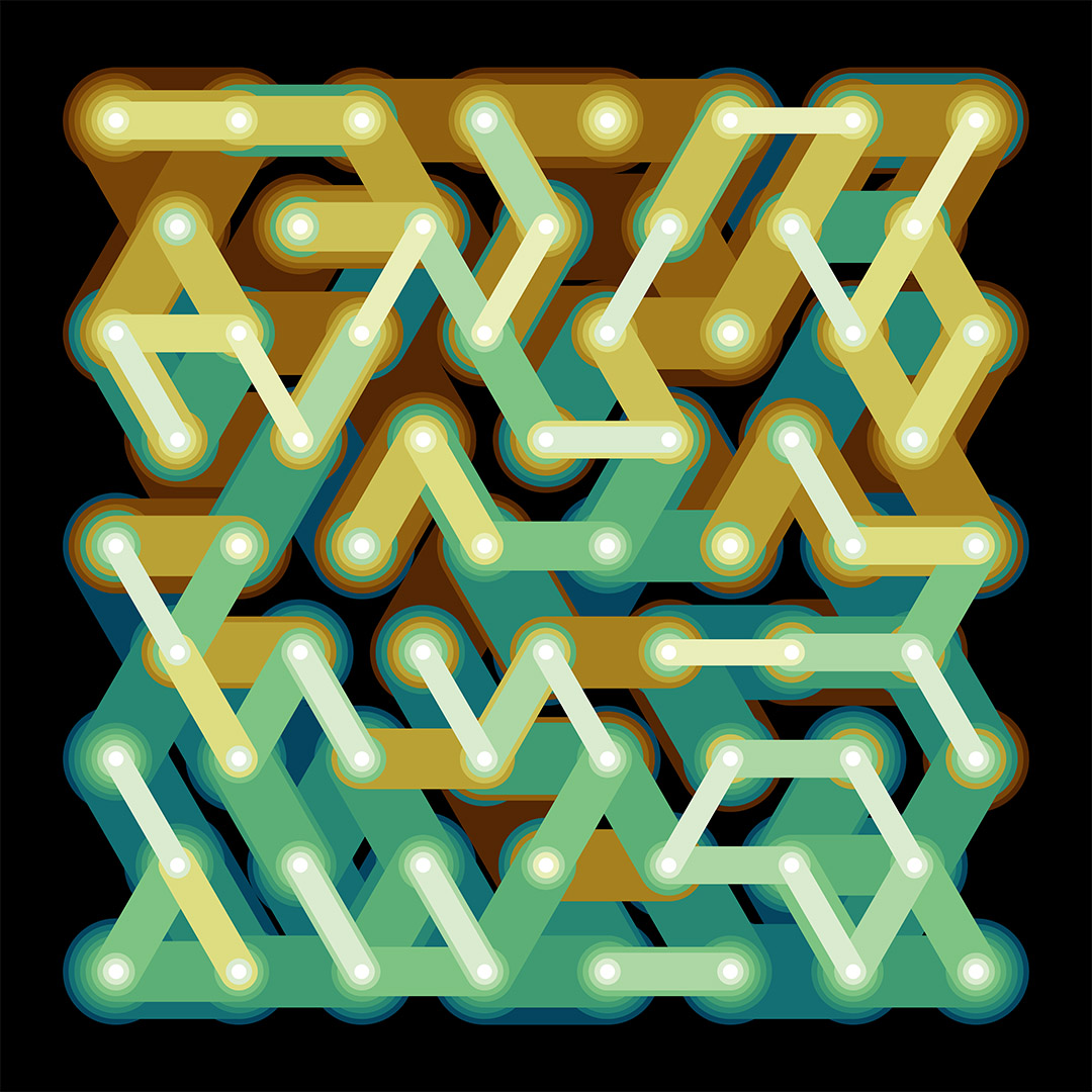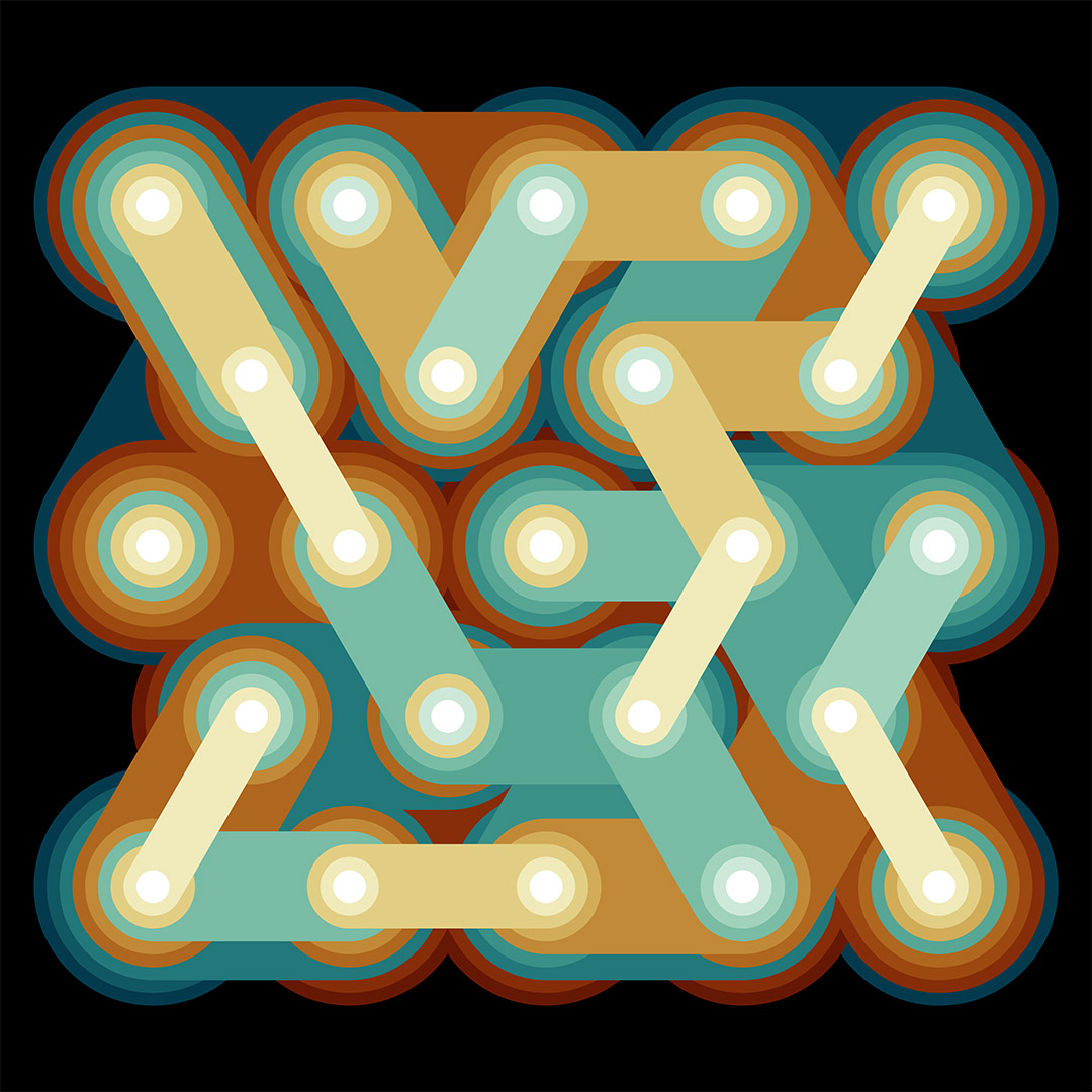 These minimalist images arose out of a desire to focus on simplicity, perhaps to offset the complexity of life. But the underlying algorithms are in fact somewhat complicated. Most of the compositions use color palettes which are randomly generated by rules I devised, whereas others were created with palettes I chose very specifically. Each shape's color is randomly derived from the palette, but usually subject to certain probability constraints and rules which cause transitions across the image.